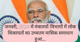 जनवरी 2024 में केंद्रीय मंत्रालयों/विभागों में 1,21,478 लोक शिकायत मामलों के समाधान के साथ सीपीजीआरएएमएस पोर्टल पर सार्वजनिक शिकायतों का उच्चतम मासिक निपटान हुआ। राज्यों/केंद्र शासित प्रदेशों में 58000 लोक शिकायतों का समाधान किया गया। फीडबैक कॉल सेंटर ने 93000 नागरिकों से फीडबैक एकत्र किया। कॉमन सर्विस सेंटर (सीएससी) दूरवर्ती क्षेत्रों में पहुंच बढ़ाने के लिए पूरे भारत में प्रत्येक महीने की 20 तारीख को सीपीजीआरएएमएस दिवस मनाता है।