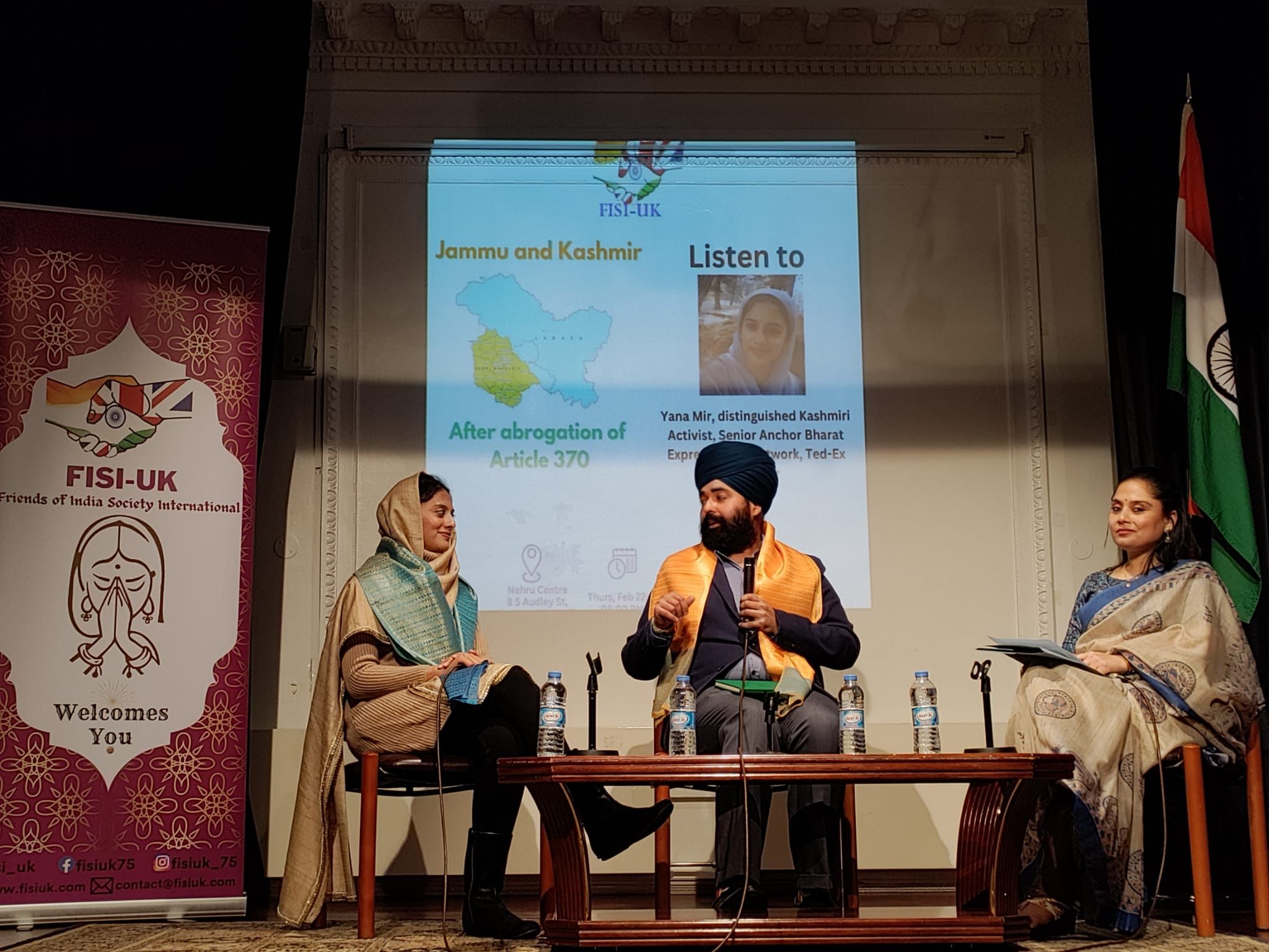 लंदन के नेहरू सेंटर में आयोजित कार्यक्रम में कश्मीरी कार्यकर्ता याना मीर और ग्लोबल ब्रिटेन के संस्थापक अध्यक्ष अमन भोगल मुख्य वक्ता थे।