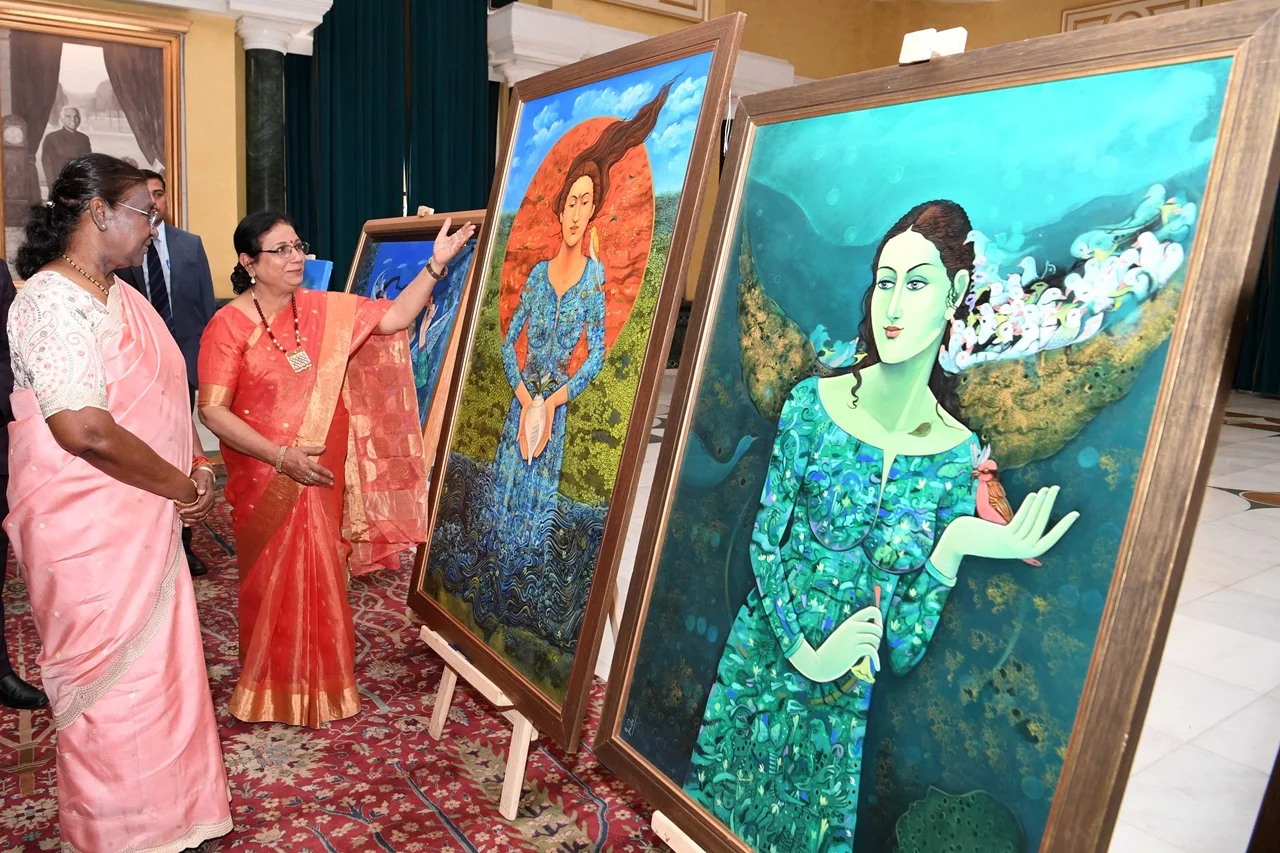 राष्ट्रपति द्रौपदी मुर्मु ने राष्ट्रपति भवन के सांस्कृतिक केंद्र में आयोजित एक कला प्रदर्शनी का किया अवलोकन