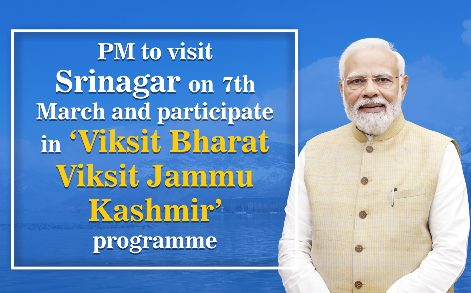 प्रधानमंत्री 7 मार्च को श्रीनगर का दौरा करेंगे और ‘विकसित भारत, विकसित जम्मू कश्मीर’ कार्यक्रम में लेंगे भाग