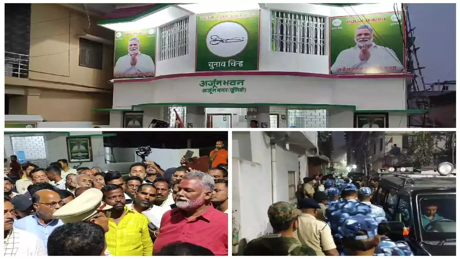 पूर्णिया लोकसभा सीट से निर्दलीय प्रत्याशी पप्पू यादव के कार्यालय पर पड़ा छापा, बड़ी संख्या में पुलिस बल तैनात