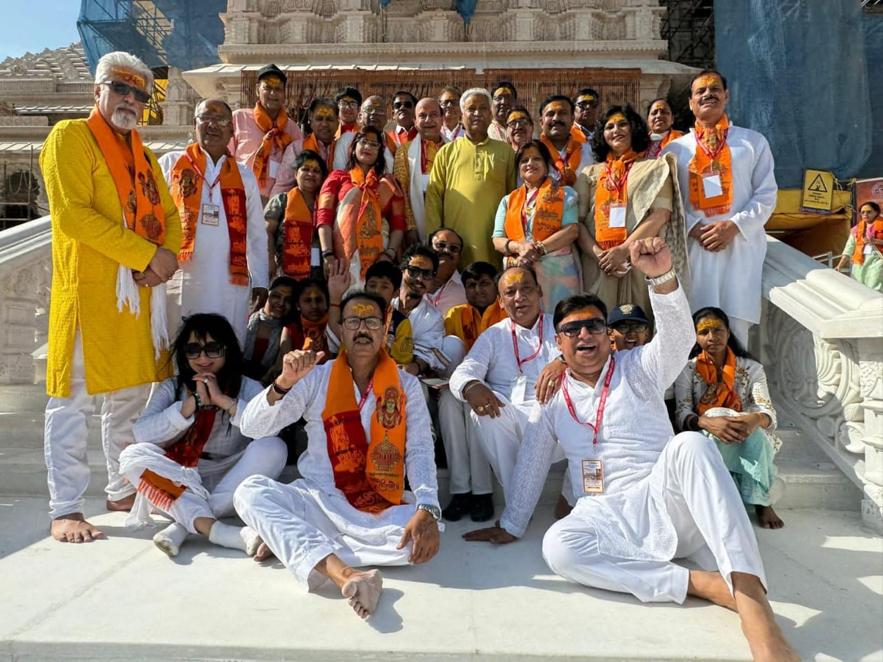 अयोध्या, 22अप्रैल। हनुमान चालिसा पाठ व जय श्रीराम के नारे लगाते आज 30 देशों के 90 प्रवासी मारतीयों संग 400 श्रद्धालुओं ने अयोध्या में राम लला के दर्शन किये। श्रद्धालुओं ने 2024 के भारतीय संसदीय चुनावों में प्रधानमंत्री नरेंद्र मोदी की अमूतपूर्ण जीत की भी कामना की। इनका नेतृत्व वैश्विक मारत ब्रांड एंबेसडर व अध्यक्ष दिल्ली ग्रुप डॉ. विजय जौली, पूर्व भाजपा दिल्ली विधायक ने किया। सभी श्रद्धालुओं को राम नवमी दुपट्टा ओढ़ा व माथे पर चंदन का तिलक लगाया गया।