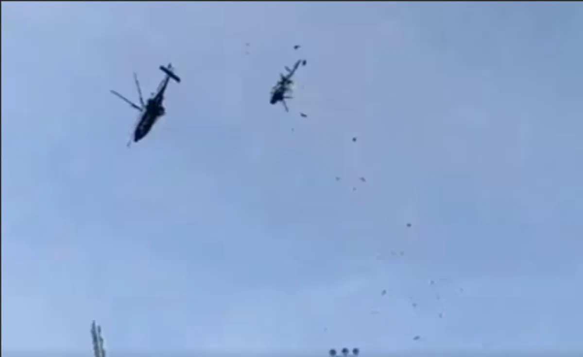 अल जज़ीरा के अनुसार, एक हेलीकॉप्टर, एक अगस्ता वेस्टलैंड AW139 मैरीटाइम ऑपरेशंस हेलीकॉप्टर (HOM), परिसर में स्टेडियम की सीढ़ियों पर दुर्घटनाग्रस्त हो गया, जबकि दूसरा, एक यूरोकॉप्टर फेनेक, एक स्विमिंग पूल के पास गिर गया. नौसेना के अनुसार, यूरोकॉप्टर पर तीन और अगस्ता पर सात चालक दल के सदस्य सवार थे। दुर्घटनास्थल पर सभी चालक दल के सदस्यों की मौत की पुष्टि की गई.