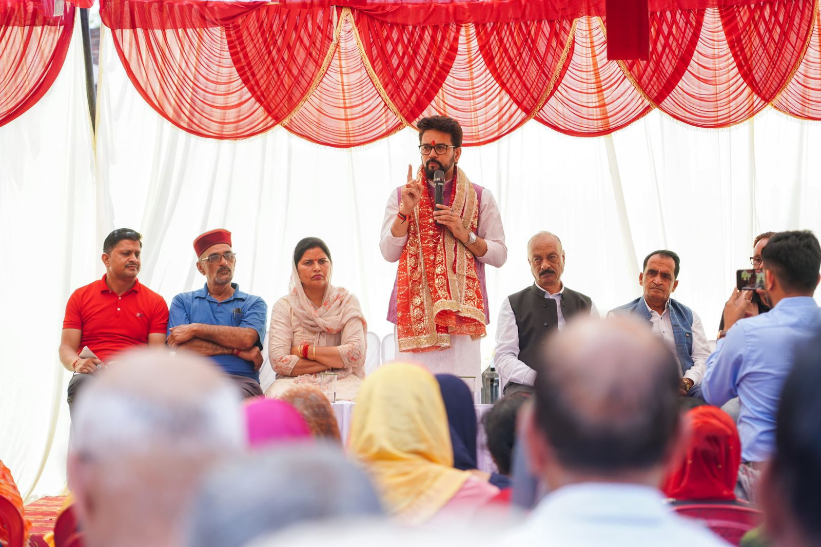 अनुराग ठाकुर ने आगे अपने संसदीय क्षेत्र के विकास के बारे में बोलते हुए कहा, “मोदी जी के आशीर्वाद से हमीरपुर संसदीय क्षेत्र में 360 डिग्री विकास हुआ है। आज क्षेत्र में 300 बेड का मेडिकल कॉलेज अस्पताल लगभग 400 करोड रुपए की लागत से बनकर तैयार हो चुका है। यहां कक्षाएं 3- 4 साल पहले से ही चालू हैं। किसने सोचा था की एक हीं संसदीय क्षेत्र में एम्स भी होगा, पीजीआई भी होगा, दो दो मेडिकल कॉलेज होंगे, केंद्रीय विद्यालय भी होंगे, केंद्रीय विश्वविद्यालय भी होगा, ट्रिपल आईटी भी होगा, एनआईटी भी होगा, हाइड्रो इंजीनियरिंग कॉलेज भी होगा, हर जिले में फोरलेन हाईवे होगा और वंदे भारत ट्रेन भी होगी। लेकिन यह सब भारतीय जनता पार्टी ने संभव कर दिखाया है। अब हमारे बच्चों को पढ़ाई के लिए बाहर नहीं जाना पड़ेगा। वह अपने घर पर रहकर डॉक्टर, इंजीनियर और वह सब कुछ बन सकते हैं जिसके वह हकदार हैं।”