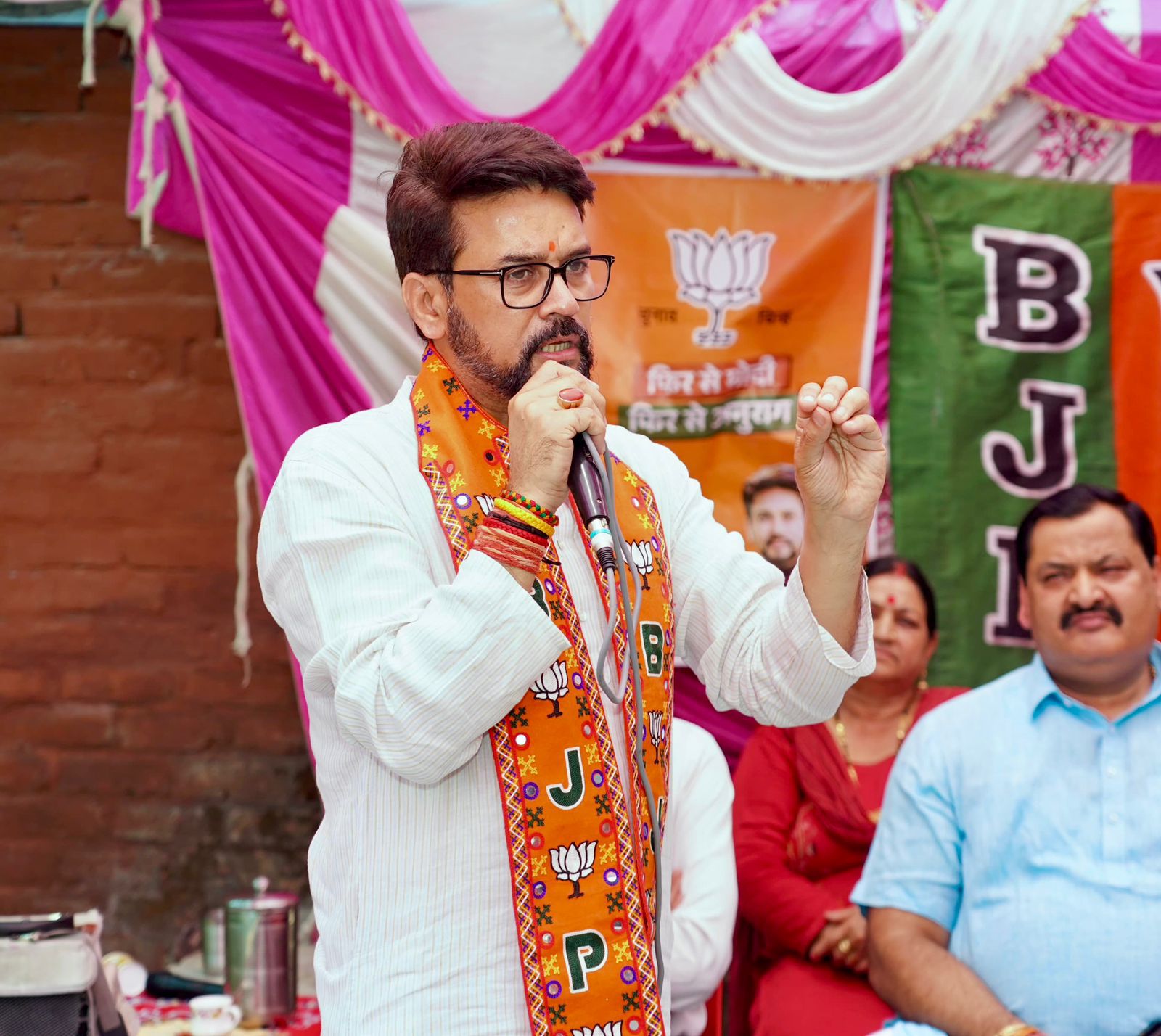 अनुराग ठाकुर ने आगे इंडी गंठबंधन पर निशाना साधते हुए कहा कि चुनाव से पहले हीं भ्रष्टाचारियों के इस अनैतिक गठजोड़ में मोटी मोटी गाठें पड़ चुकी थी लेकिन चुनाव के बीच तो इनका गठबंधन ताश के पत्तों की तरह बिखर चुका है। पंजाब में कांग्रेस अलग लड़ रही है, आम आदमी पार्टी अलग लड़ रही है। बंगाल में तृणमूल कांग्रेस अलग लड़ रही है, कांग्रेस अलग लड़ रही है। उधर वायनाड में राहुल गांधी के खिलाफ वाम दलों ने अलग से मोर्चा खोल रखा है। पंजाब में जहां आम आदमी पार्टी और कांग्रेस वाले एक दूसरे के कपड़े फाड़ रहे हैं वहीं दूसरी ओर बंगाल में तो कांग्रेस के एक कद्दावर नेता कहते हैं कि तृणमूल कांग्रेस को वोट देने से अच्छा है भाजपा को वोट दे दो। दिल्ली में प्रदेश कांग्रेस के अध्यक्ष और आधी पार्टी, आम आदमी पार्टी के साथ गठजोड़ के विरोध में इस्तीफा दे गए। इतना सब होने के बाद भी यह लोग 5 वर्षों में 10 प्रधानमंत्री बनाने का सपना देख रहे हैं। ये कभी पूरा नहीं होगा।”