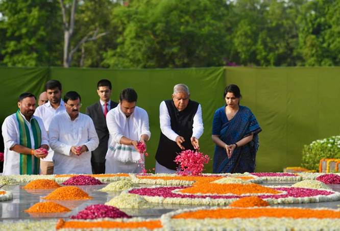 नई दिल्ली, 29मई। भारत के उपराष्ट्रपति जगदीप धनखड़ ने आज पूर्व प्रधानमंत्री चौधरी चरण सिंह की 37वीं पुण्य तिथि पर उनके समाधि स्थल ‘किसान घाट’ पर श्रद्धा सुमन अर्पित किए। इस अवसर पर राज्य सभा सांसद, जयंत चौधरी व अन्य गणमान्य जन भी ‘किसान घाट’ पर उपस्थित रहे।