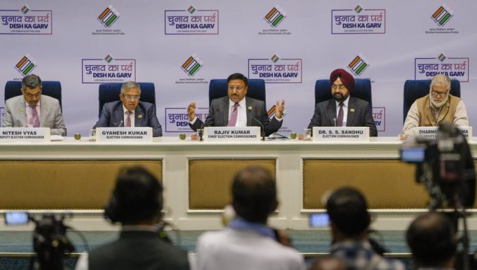 नई दिल्ली, 03जून। लोकसभा चुनाव की काउंटिंग से पहले सोमवार (3 जून) को इलेक्शन कमीशन ने दिल्ली में प्रेस कॉन्फ्रेंस की. चार जून यानी मंगलवार (4 जून) को वोटों की गिनती होने जा रही है. इससे पहले चुनाव आयुक्त राजीव कुमार ने कहा कि 64.2 करोड़ लोगों ने वोट दिया. दुनिया में कहीं ऐसा नहीं हुआ है.