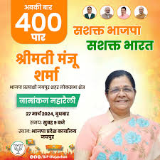 जयपुर का नतीजा आया सामने. भाजपा प्रत्याशी मंजू शर्मा हुई विजय. भाजपा नेता मंजू शर्मा ने 331767 मतों के अंतर से जीत दर्ज की है.