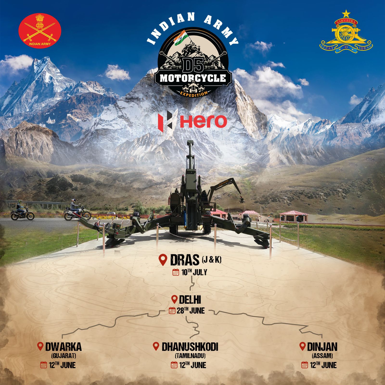ये टीम 26 जून को दिल्ली में एकत्र होंगी और दो अलग-अलग मार्गों से द्रास के लिए रवाना होंगी। एक मार्ग अंबाला, अमृतसर, जम्मू, ऊधमपुर और श्रीनगर होते हुए 1,085 किलोमीटर की दूरी तय करता है जबकि दूसरा चंडीमंदिर, मनाली, सरचू, न्योमा, तंगत्से और लेह के माध्यम से 1,509 किलोमीटर की दूरी तय करता है। इस अभियान का समापन में द्रास के गन हिल में होगा, जो कारगिल युद्ध के दौरान अपने रणनीतिक महत्व के लिए इतिहास में अंकित एक स्थान है। अभियान का यह अंतिम चरण न केवल बहादुरी के मार्ग पर फिर से आगे बढ़ेगा, बल्कि यह हमारे सैनिकों की अथक भावना और समर्पण की याद दिलाने का भी काम करेगा।