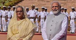 बांग्लादेश की प्रधानमंत्री शेख हसीना का राष्ट्रपति भवन के प्रांगण में औपचारिक स्वागत किया गया। भारत के दौरे पर पहुंची प्रधानमंत्री शेख हसीना ने राजघाट पर पुष्पांजलि अर्पित की और महात्मा गांधी को श्रद्धांजलि दी। प्रधानमंत्री नरेन्द्र मोदी और बांग्लादेश की प्रधानमंत्री शेख हसीना ने दिल्ली के हैदराबाद हाउस में मुलाकात की।