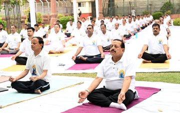 “आज सुबह प्रधानमंत्री कार्यालय में 10वां अंतर्राष्ट्रीय योग दिवस मनाया गया। प्रधानमंत्री कार्यालय में राज्य मंत्री डॉ. जितेंद्र सिंह, प्रधानमंत्री के प्रधान सचिव डॉ. पी. के. मिश्रा, वरिष्ठ अधिकारियों और अन्य लोगों ने योग सत्र में सहभागिता की।