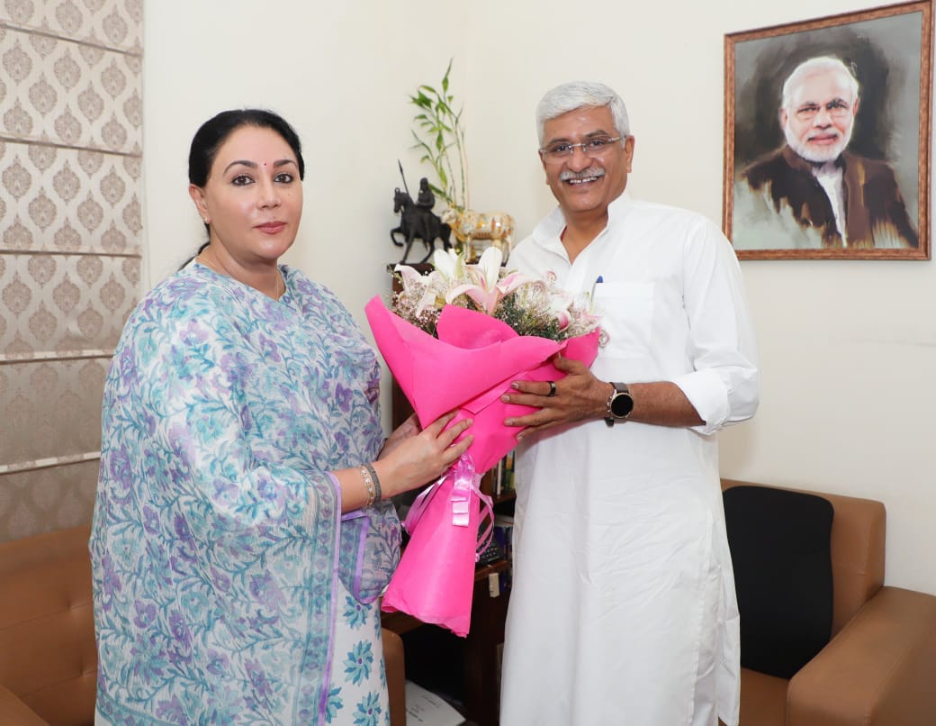नई दिल्ली, 25जून। राजस्थान की उप-मुख्यमंत्री दीया कुमारी ने सोमवार को नई दिल्ली में केंद्रीय संस्कृति और पर्यटन मंत्री गजेंद्र सिंह शेखावत से उनके आवास पर शिष्टाचार भेंट की। इस दौरान उप मुख्यमंत्री की केंद्रीय मंत्री शेखावत से प्रदेश और जनहित के मुद्दों पर सकारात्मक बातचीत हुई।