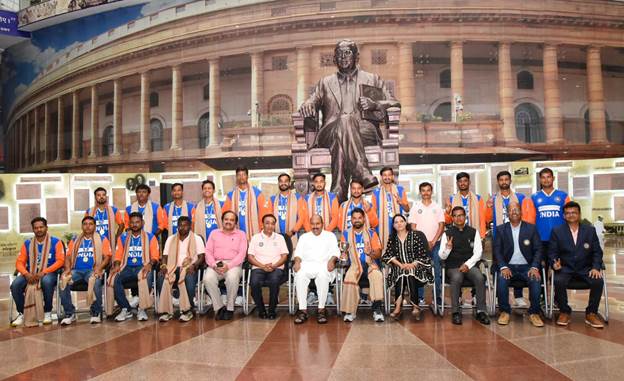 नई दिल्ली,04जुलाई। अंतरराष्ट्रीय स्तर पर भारतीय बधिर क्रिकेट टीम ने इतिहास रचते हुए 18 जून से 27 जून 2024 के मध्य इंग्लैंड में खेले गए द्विपक्षीय टी-20 मैच श्रृखंला में मेजबान टीम को 5-2 से हराकर सीरीज अपने नाम किया। इस ऐतिहासिक जीत पर दिल्ली स्थित डॉ अंबेडकर अंतरराष्ट्रीय केंद्र में सामाजिक न्याय और अधिकारिता मंत्रालय के केंद्रीय मंत्री डॉ वीरेंद्र कुमार द्वारा भारतीय बधिर टीम के सभी सदस्यों को बधाई दी गई और उन्हें सम्मानित किया गया।