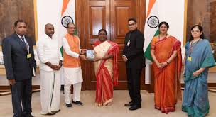 नई दिल्ली, 19जुलाई। राष्ट्रपति द्रौपदी मुर्मु ने राष्ट्रपति भवन में केंद्रीय कृषि और किसान कल्याण व ग्रामीण विकास मंत्री शिवराज सिंह चौहान से चार पुस्तकों की प्रथम प्रतियां प्राप्त कीं। ये पुस्तकें हैं- ‘विंग्स टू अवर होप्स’, ‘आशाओं की उड़ान, ‘कहानी राष्ट्रपति भवन की’ और ‘राष्ट्रपति भवन: हेरिटेज मीट्स द प्रेजेंट’। इस अवसर पर उपस्थित गणमान्य व्यक्तियों में सूचना और प्रसारण व संसदीय कार्य राज्य मंत्री डॉ. एल. मुरुगन सहित प्रकाशन प्रभाग निदेशालय और सूचना एवं प्रसारण मंत्रालय के अधिकारी शामिल थे।