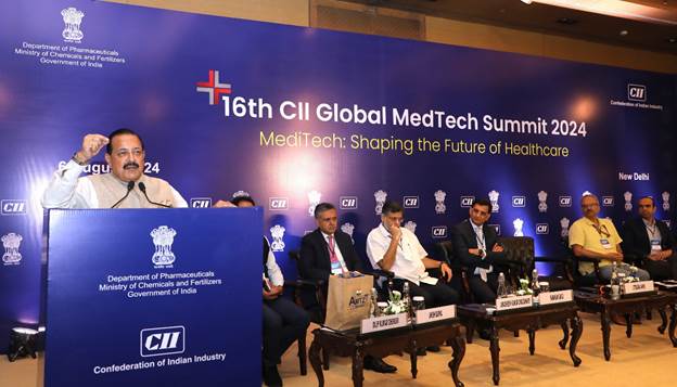 नई दिल्ली,7 अगस्त। केंद्रीय मंत्री डॉ. जितेंद्र सिंह ने नई दिल्ली के होटल ली मेरिडियन में भारतीय उद्योग परिसंघ (सीआईआई) द्वारा आयोजित “ग्लोबल मेडटेक समिट 2024” को संबोधित किया। उन्होंने कहा कि भारत विश्व स्तरीय, लागत-प्रभावी स्वास्थ्य सेवा गंतव्य के रूप में और साथ ही वैश्विक फार्मा उद्योग में लीडर के रूप में उभर रहा है।