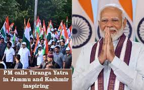 नई दिल्ली, 12अगस्त। प्रधानमंत्री नरेन्द्र मोदी ने आज जम्मू-कश्मीर में निकाली गई तिरंगा यात्रा को प्रेरणादायक बताया। श्री मोदी ने उपराज्यपाल मनोज सिन्हा की एक पोस्ट को पुनः साझा करते हुए लिखा, “तिरंगा यात्रा को लेकर जम्मू-कश्मीर के लोगों की यह भावना हर किसी को प्रेरित करने वाली है।”