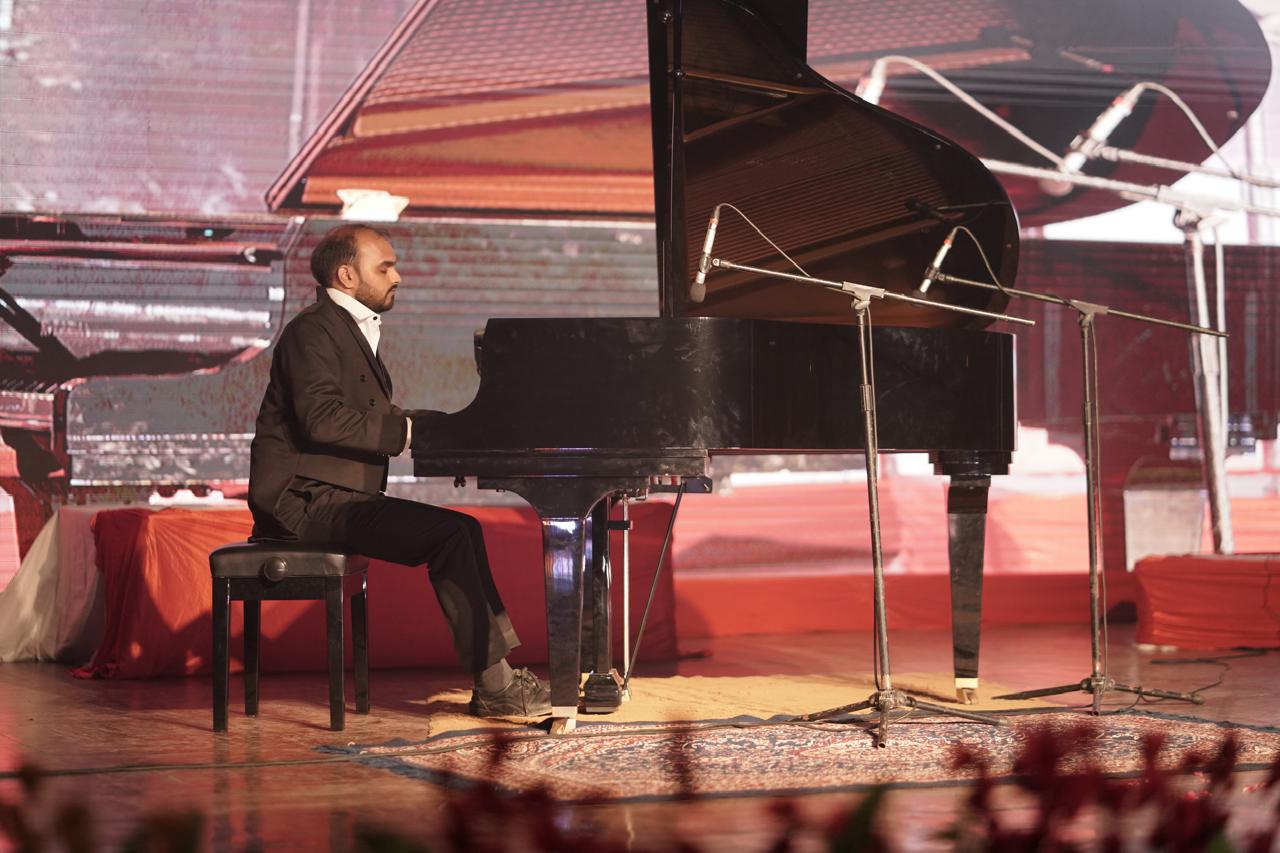 कार्यक्रम का समापन ए.आर. रहमान द्वारा रचित “वंदे मातरम्” और राष्ट्र प्रेम के गीतों से हुआ, जिसने माहौल को देशभक्ति से ओतप्रोत कर दिया। कार्यक्रम के पहले दौर में युवा प्यानो वादकों आदिल हुसैन, नितांशी मारू, नचिकेत जोशी, नीलेश सोनी और तनय गंगवाल ने विदेशी गीतों की धुनें बजाकर कार्यक्रम की दिशा तय की। इन युवा कलाकारों के आत्मविश्वास और प्रदर्शन की श्रोताओं ने खूब प्रशंसा की।