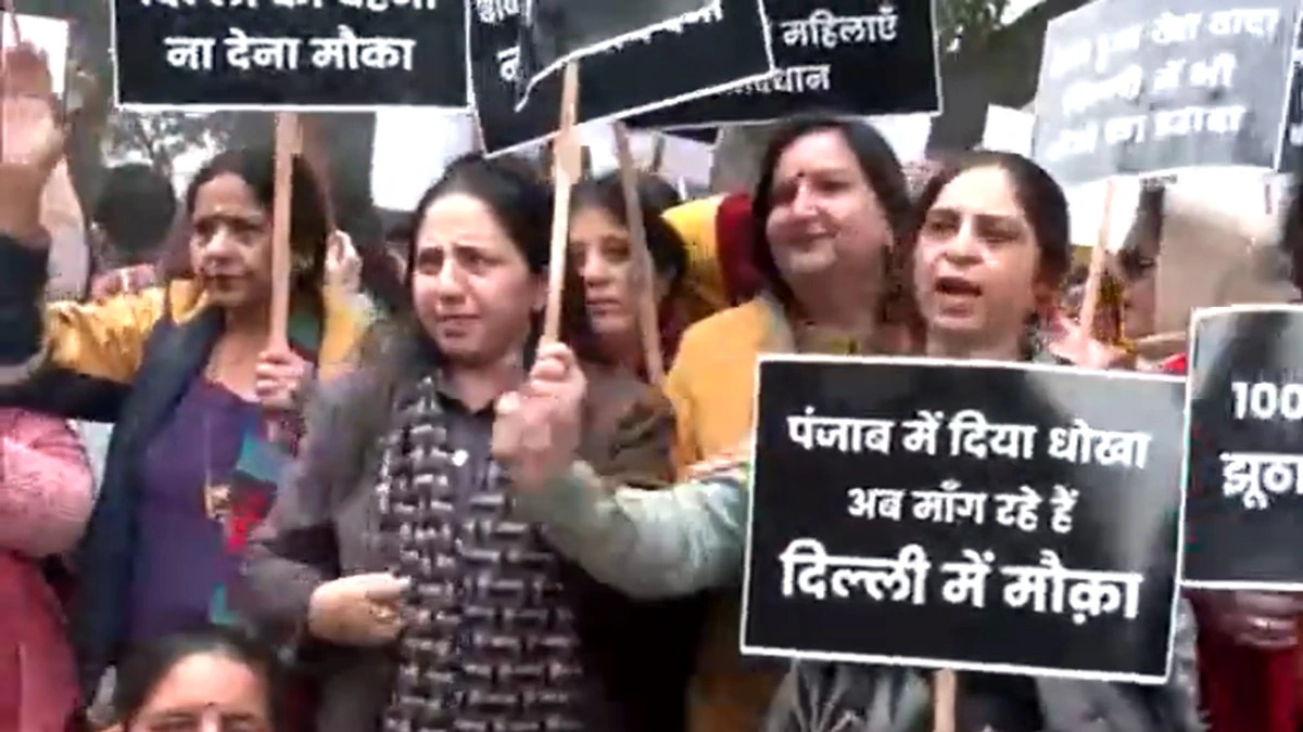 नई दिल्ली,4 जनवरी। दिल्ली के मुख्यमंत्री अरविंद केजरीवाल के आवास के बाहर पंजाब की महिलाओं ने मंगलवार को जोरदार प्रदर्शन किया। प्रदर्शनकारियों का आरोप है कि आम आदमी पार्टी (AAP) ने पंजाब में महिलाओं से किए अपने चुनावी वादों को पूरा नहीं किया। इस प्रदर्शन को कांग्रेस ने भी समर्थन देते हुए AAP पर निशाना साधा और कहा कि पार्टी ने “झूठे वादे” कर पंजाब की जनता को गुमराह किया।