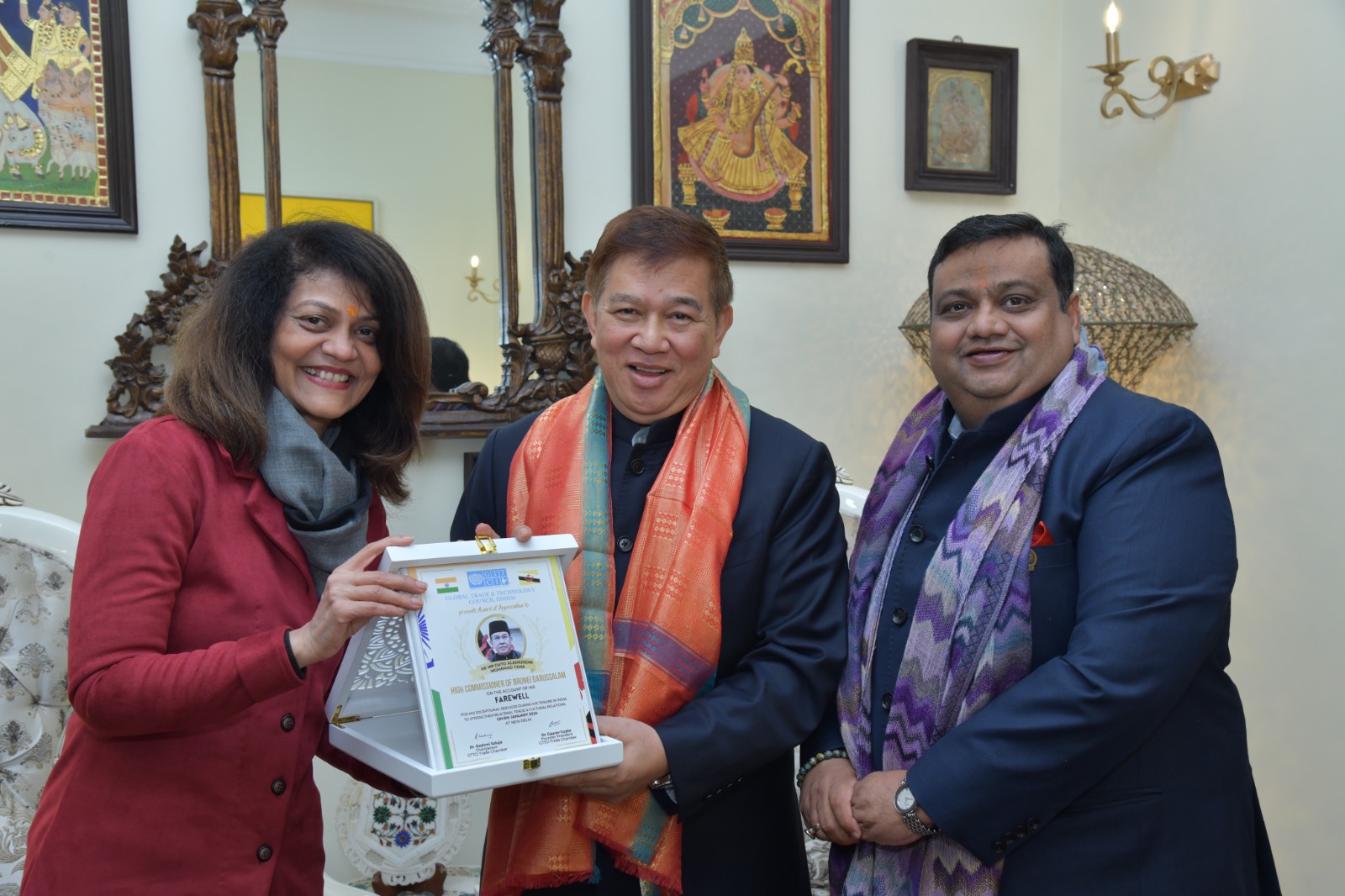 नई दिल्ली,9 जनवरी। ग्लोबल ट्रेड एंड टेक्नोलॉजी काउंसिल ऑफ इंडिया (जीटीटीसीआई) ने ब्रुनेई दारुस्सलाम के उच्चायुक्त महामहिम श्री दातो अलैहुद्दीन मोहम्मद ताहा के सम्मान में एक विदाई ब्रंच का आयोजन किया। इस कार्यक्रम का आयोजन रेलिगेयर ग्रुप के सहयोग से नई दिल्ली के डिप्लोमैटिक एन्क्लेव में जीटीटीसीआई और रेलिगेयर ग्रुप की अध्यक्ष डॉ. रश्मि सलूजा के आवास पर किया गया।