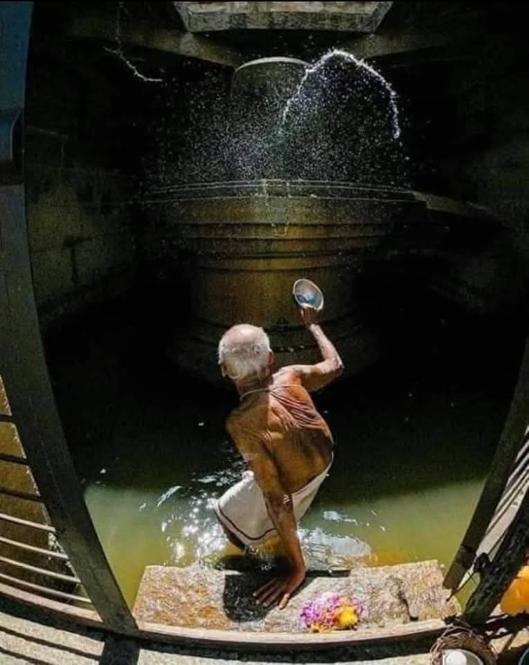 के० एन० कृष्णा भट कई दशकों से अपने मंदिर में शिवलिंग की पूजा और सेवा कर रहे हैं। इस शिवलिंग की लंबाई 9 फीट से अधिक है, और भट जी इसे अकेले ही रोजाना साफ करते हैं। यह कार्य केवल शारीरिक मेहनत नहीं है, बल्कि इसके पीछे उनका दृढ़ संकल्प, सादगी और भगवान शिव के प्रति गहरी आस्था का भाव छिपा है।