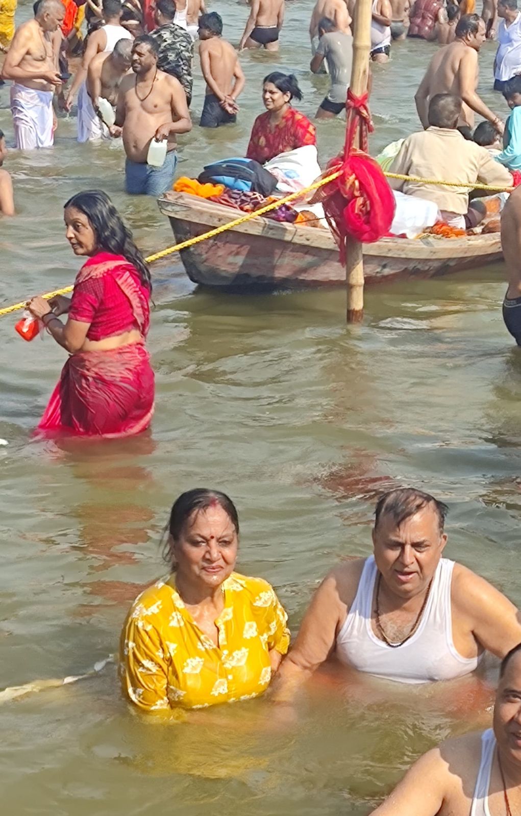 प्रयागराज,25 फरवरी। इंडियन इकोनॉमिक एसोसिएशन के राष्ट्रीय अध्यक्ष एवं मणिपुर केंद्रीय विश्वविद्यालय के पूर्व कुलपति प्रो. आद्या प्रसाद पाण्डेय ने अपनी पत्नी भाजपा महिला मोर्चा की पूर्व राष्ट्रीय उपाध्यक्ष एवं उत्तर प्रदेश की पूर्व विधान परिषद सदस्य डॉ. वीणा पाण्डेय के साथ महाकुंभ में संगम स्नान किया। स्नान के पश्चात उन्होंने कहा कि संगम का जल न केवल स्नान बल्कि आचमन के लिए भी अत्यंत शुद्ध और पवित्र है।
