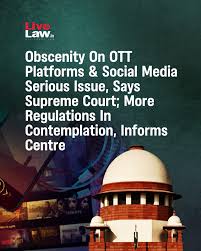 OTT प्लेटफॉर्म्स पर बढ़ती अश्लीलता को लेकर भारत के सर्वोच्च न्यायालय ने केंद्र सरकार से सख्त कानून बनाने की मांग की है।