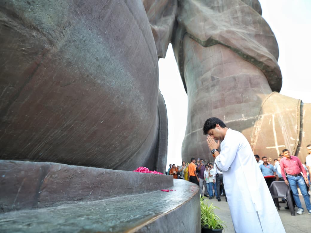 केंद्रीय मंत्री ज्योतिरादित्य सिंधिया ने केवड़िया में सरदार पटेल को नमन किया और कहा, 'यह प्रतिमा भारत की एकता और विकसित राष्ट्र के संकल्प का प्रतीक है।'