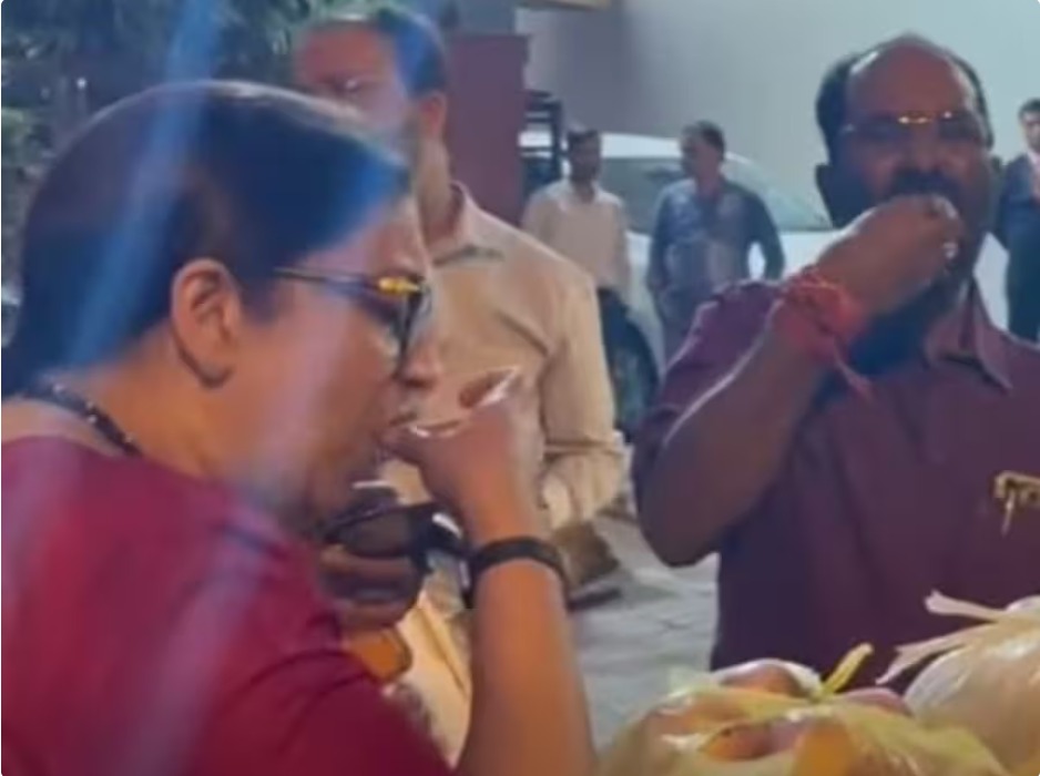 गोलगप्पे खाते हुए स्मृति ईरानी का वीडियो सोशल मीडिया पर तेजी से वायरल हो रहा है। वीडियो में उनकी सहजता और आम लोगों से मिलने का अंदाज साफ झलक रहा है। वीडियो में एक मजेदार पल तब आया जब तीखा गोलगप्पा खाने के बाद उन्होंने ठेले वाले से आग्रह किया, “हमको मीठा दीजिएगा,” यानी उन्होंने तीखे पानी के बजाय मीठे पानी की माँग की।