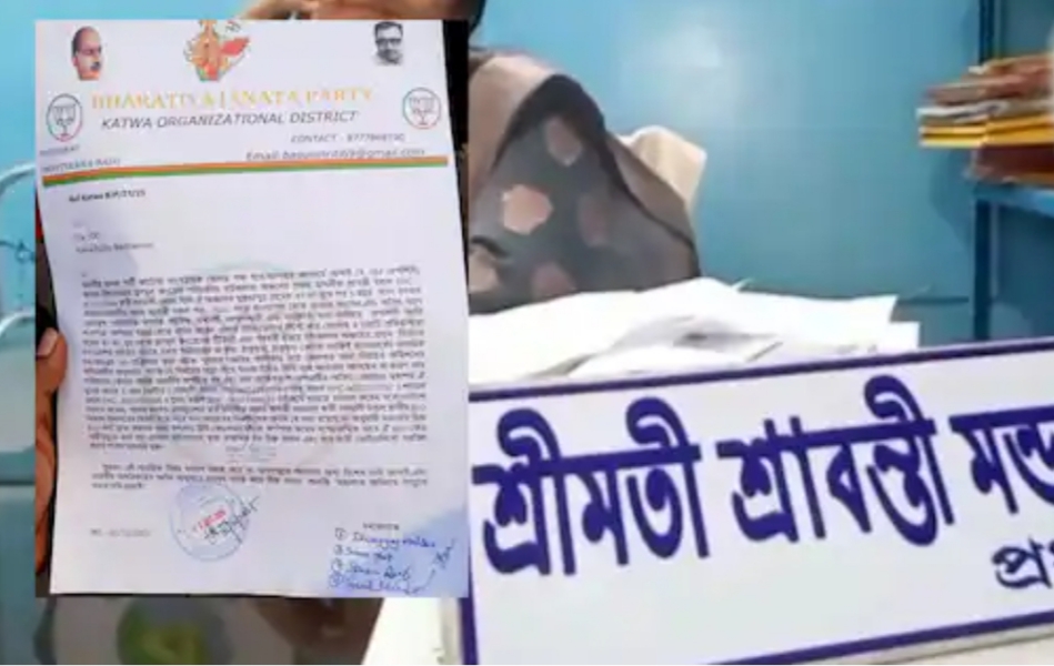 कालना (पश्चिम बर्धमान), 4 दिसंबर: पश्चिम बर्धमान जिले के कालना क्षेत्र में विशेष गहन पुनरीक्षण मसले के बीच राजनीति एक बार फिर गर्मा गई है। हाटकालना ग्राम पंचायत की तृणमूल कांग्रेस से चुनी गई प्रधान श्राबंती मंडल पर बीजेपी ने गंभीर आरोप लगाए हैं। पार्टी नेताओं ने उप-मंडल शासक (SDO) को लिखित शिकायत देकर दावा किया कि श्राबंती अवैध बांग्लादेशी हैं और फर्जी दस्तावेज़ों के आधार पर चुनाव जीतकर प्रधान बनी हैं।