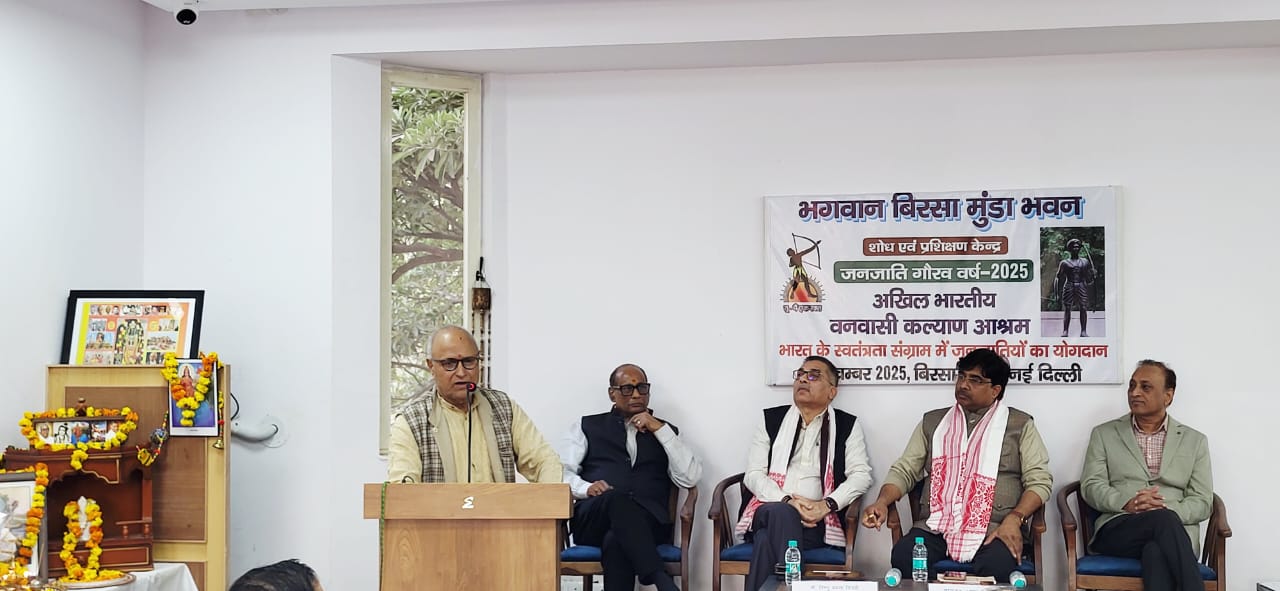 नई दिल्ली, 6 दिसंबर: भगवान बिरसा मुंडा भवन (ट्राइबल रिसर्च एंड ट्रेनिंग सेंटर), अखिल भारतीय वनवासी कल्याण आश्रम ने श्याम लाल कॉलेज, दिल्ली विश्वविद्यालय के सहयोग से जनजातीय गौरव वर्ष और भगवान बिरसा मुंडा की 150वीं जयंती के उपलक्ष्य में विशेष व्याख्यान श्रृंखला का आयोजन किया। दो सत्रों में आयोजित इस कार्यक्रम में जनजातीय स्वतंत्रता सेनानियों के योगदान, पराक्रम और बलिदान को याद किया गया। कार्यक्रम में शिक्षाविदों, शोधकर्ताओं, विद्यार्थियों और जनजातीय कल्याण से जुड़े प्रतिनिधियों ने भाग लिया।