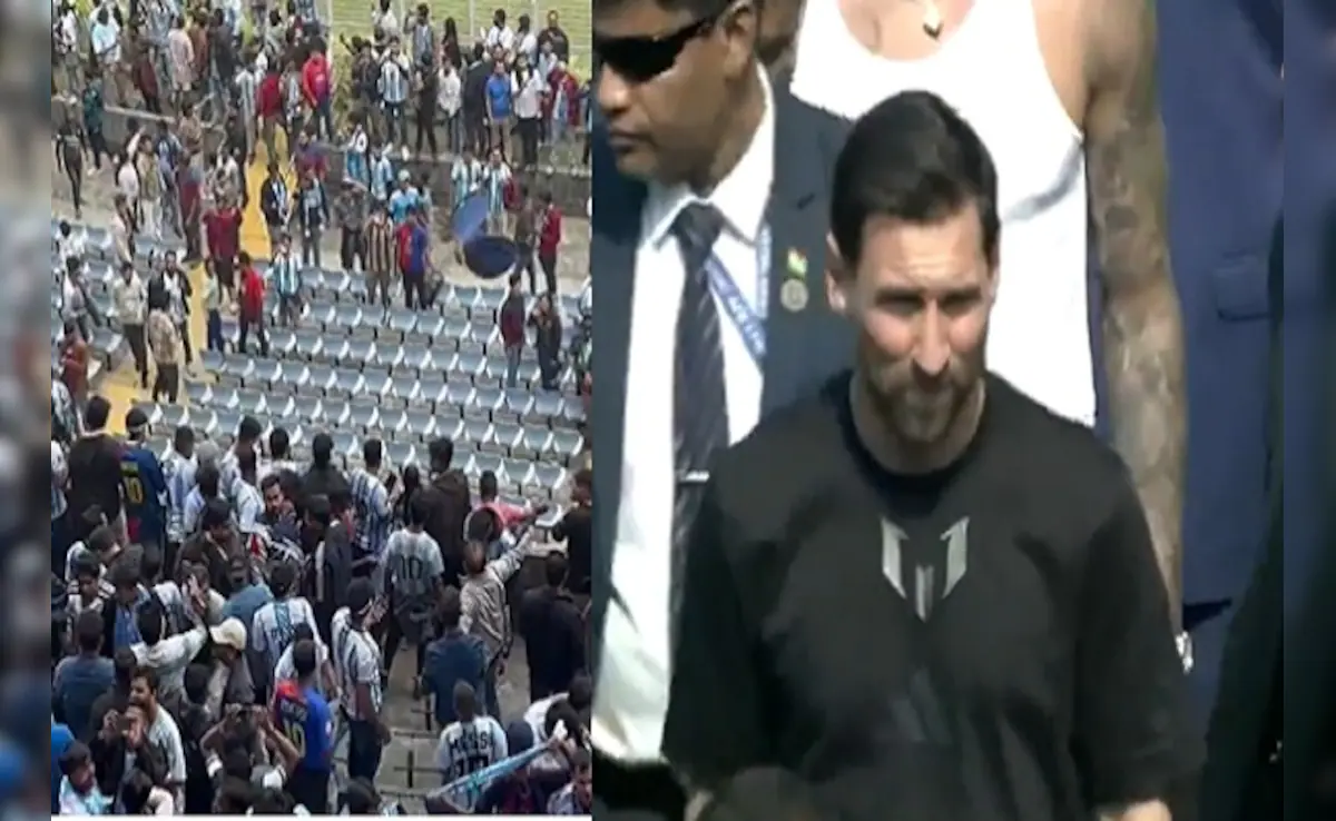 साल्ट लेक स्टेडियम में मेस्सी मैदान का पूरा चक्कर भी नहीं लगा पाए। उनके चारों ओर मौजूद सिक्योरिटी और ऑफिशियल्स के कारण दर्शकों की नाराजगी और बढ़ गई। बढ़ते हंगामे के बीच मेस्सी को स्टेडियम से बाहर निकाल लिया गया।