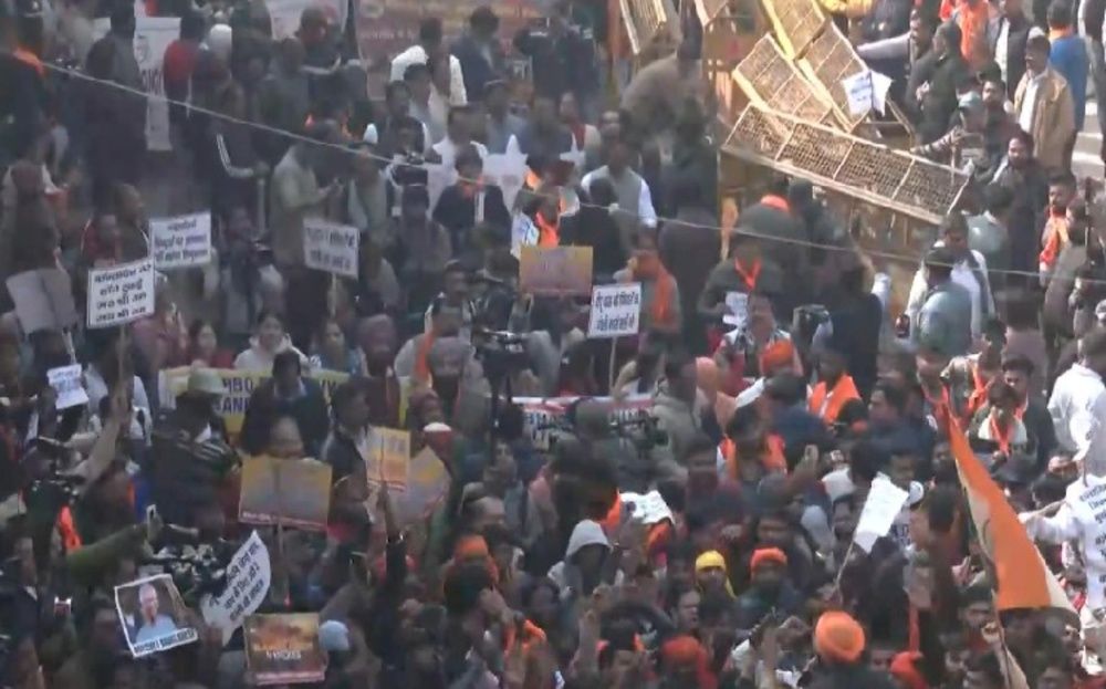 • विहिप–बजरंग दल के नेतृत्व में नारेबाजी, बैरिकेडिंग तोड़ने की कोशिश से तनाव।