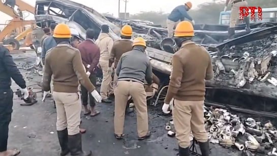 टक्कर के बाद बस में मिनटों के भीतर फैल गई आग