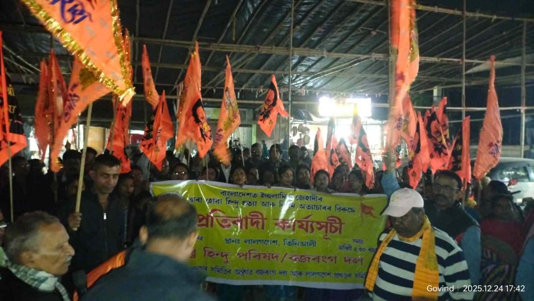 गुवाहाटी 25 दिसंबर – बांग्लादेश में हिंदुओं पर हो रहे जघन्य हत्याकांड और मौलवादी अत्याचारों के विरोध में बुधवार को गुवाहाटी के लालगणेश तिनिआली क्षेत्र में विश्व हिंदू परिषद (विहिप), बजरंग दल और सकल हिंदू समाज के लोगों ने ज़ोरदार प्रदर्शन किया। इस विरोध प्रदर्शन में सैकड़ों की संख्या में सनातनी नागरिक शामिल हुए।