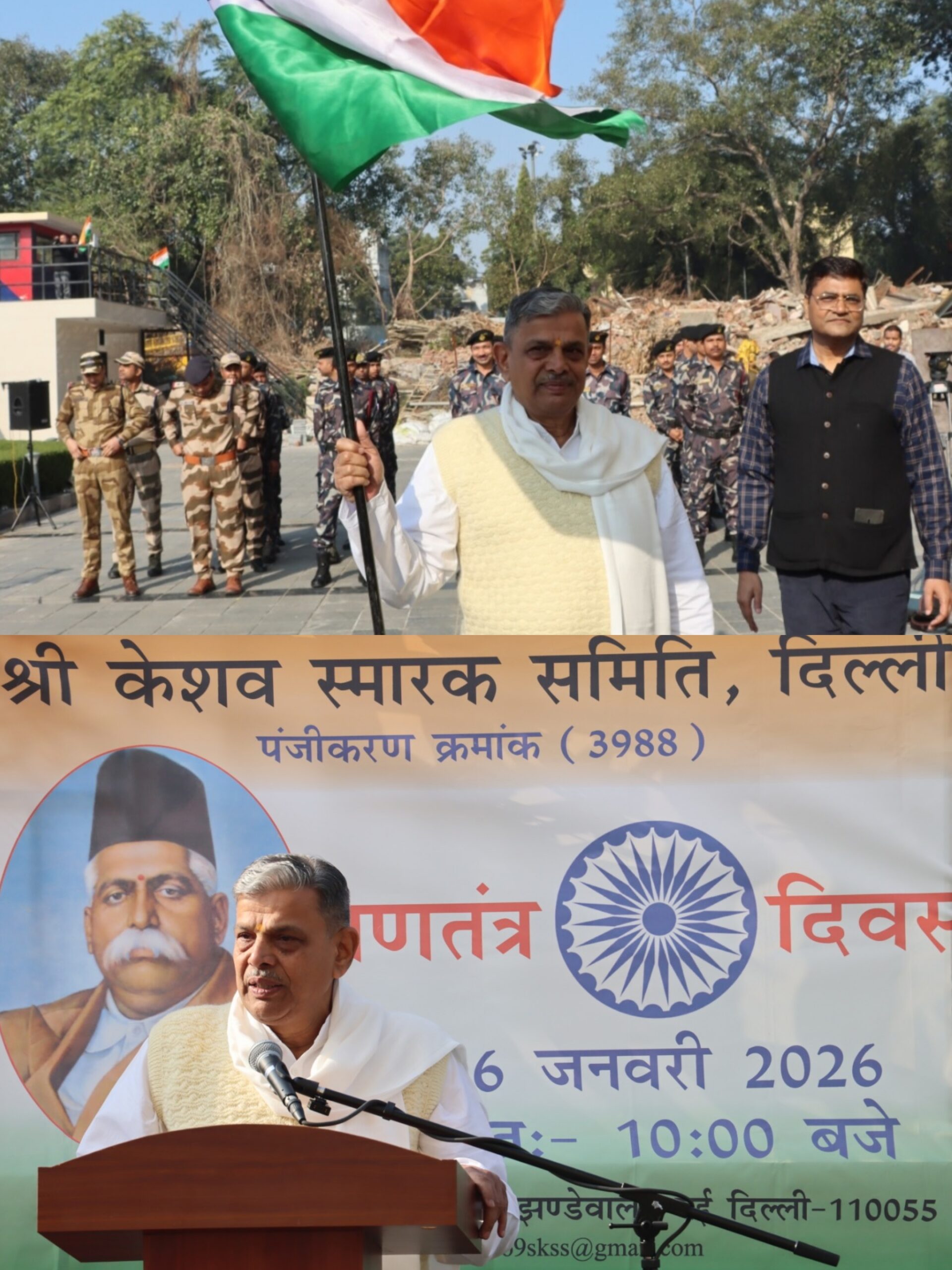 नई दिल्ली | 26 जनवरी: भारत के 77वें गणतंत्र दिवस के अवसर पर राष्ट्रीय स्वयंसेवक संघ के सरकार्यवाह श्री दत्तात्रेय होसबाले ने दिल्ली स्थित केशवकुंज में झंडोत्तोलन किया और उपस्थित स्वयंसेवकों व नागरिकों को संबोधित किया।