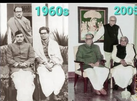 पहले फोटो में दिख रहे ये तीनों नेता 1960 के दशक में भारतीय राजनीति में सक्रिय थे। दूसरे फोटो में 2005 के समय में उनकी उपस्थिति बताती है कि राजनीतिक अनुभव और रणनीति समय के साथ और भी परिपक्व हुई। उनके सामने आने वाले कठिन निर्णय और संघर्षों ने आज के बीजेपी के लिए मार्ग प्रशस्त किया।