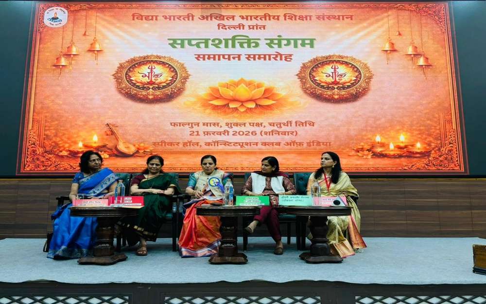नई दिल्ली, 21 फरवरी: संघ शताब्दी वर्ष के अंतर्गत विद्या भारती अखिल भारतीय शिक्षा संस्थान द्वारा आयोजित देशव्यापी “सप्तशक्ति संगम” अभियान का दिल्ली प्रांत समापन समारोह आज कंस्टीट्यूशन क्लब ऑफ इंडिया में संपन्न हुआ। कार्यक्रम का उद्देश्य मातृशक्ति के सशक्तिकरण, संगठन और जागरण के माध्यम से समाज जीवन में सकारात्मक परिवर्तन लाना रहा।