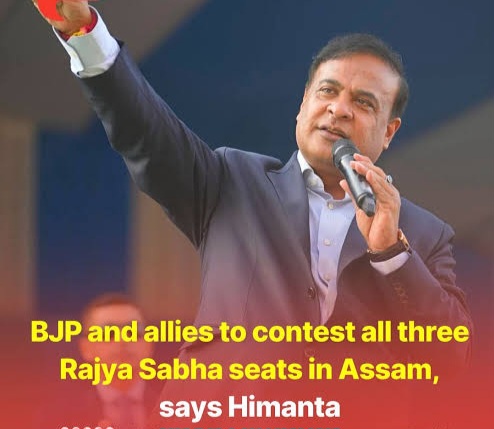 गुवाहाटी/नई दिल्ली 22 फ़रवरी : । असम की राजनीति में राज्यसभा चुनाव को लेकर सरगर्मियां तेज हो गई हैं। मुख्यमंत्री हिमंत बिस्वा सरमा ने शनिवार को स्पष्ट किया कि भारतीय जनता पार्टी राज्य की दो रिक्त राज्यसभा सीटों पर 16 मार्च को होने वाले चुनाव में पूरी मजबूती के साथ मैदान में उतरेगी। साथ ही तीसरी खाली सीट को लेकर भी पार्टी स्तर पर रणनीति बनाई जा रही है।