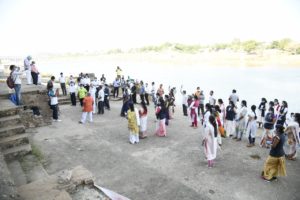 कार्यक्रम की शुरुआत गांधी जी के अस्थि कलश जो चम्बल तट पर रखे हुए है वहां उनको श्रद्धांजलि देकर पुष्पांजलि अर्पित की।