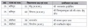 भारतीय जनता पार्टी (भाजपा) ने ओडिशा, छत्तीसगढ़, मणिपुर, झारखंड और गुजरात की 16 विधानसभा सीटों पर उपचुनाव के लिए उम्मीदवारों की रविवार को घोषणा की।