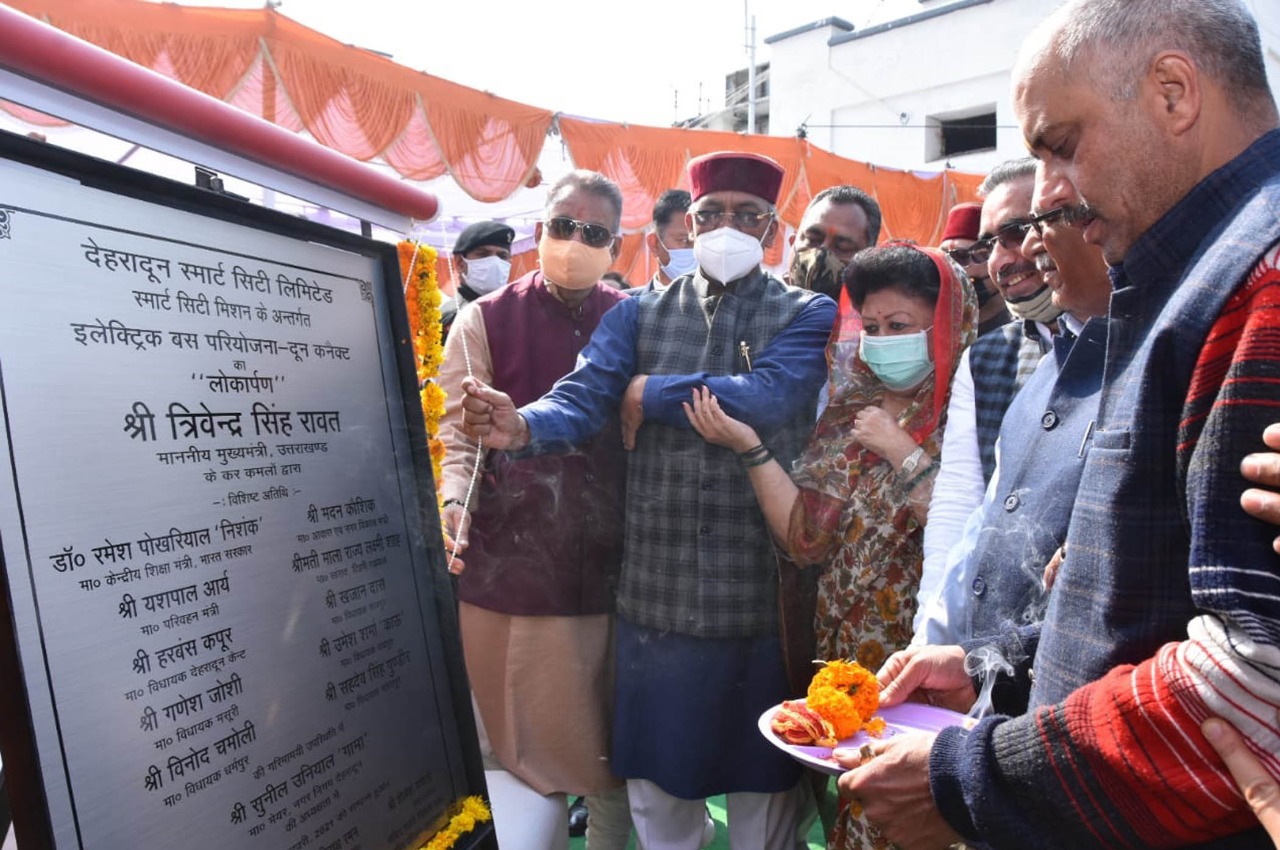 मुख्यमंत्री श्री त्रिवेन्द्र सिंह रावत ने दिलाराम चौक स्थित जल संस्थान कार्यालय से किया इलेक्ट्रिक बसों के संचालन का शुभारम्भ