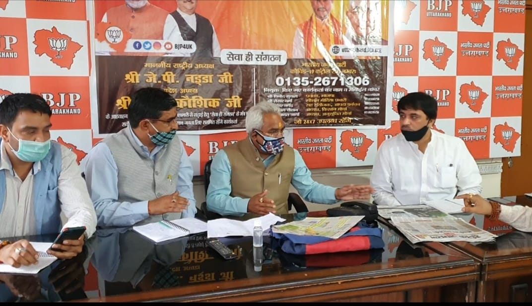 देहरादून, 23 अप्रैल। भाजपा प्रदेश अध्यक्ष श्री मदन कौशिक ने भाजपा मुख्यालय में बनाए गए कोविड कंट्रोल रूम का निरीक्षण कर व्यवस्थाओं का जायजा लिया। प्रदेश अध्यक्ष ने कंट्रोल रूम से देहरादून के कई सरकारी व निजी अस्पताल के संचालकों से दूरभाष पर वार्ता कर सहयोग की अपेक्षा की और कंट्रोल रूम संचालन टीम के साथ समन्वय बनाने का आग्रह किया। इसके आलावा श्री कौशिक ने अन्य जिलों में स्थापित किये गए कोविड कट्रोल रूम केन्द्रो में जरूरतमंदो के सहयोग के लिए किये जा रहे कार्यों की भी भाजपा जिलाध्यक्षों से अपडेट ली। उन्होंने कहा कि भाजपा कार्यकर्ता हर जरुरतमन्द तक पहुचे इसके लिए कमर कस कर जुट जाए। पीड़ितों को समय पर दवाई,उपचार और जरुरी मदद मुहैया कराने के लिए तत्पर रहे। उन्होंने कहा कि यह समय एक दूसरे की मदद का है और जितना हो सके एक दूसरे के दुःख में शरीक होकर कोरोना पर जीत हासिल करनी है।