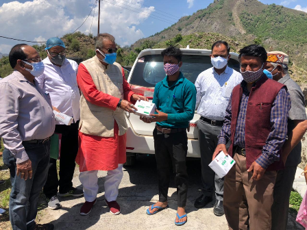इस दौरान काबीना मंत्री द्वारा क्षेत्र में कोविड पाजिटिव आए 16 व्यक्तियों को ग्राम प्रधान के माध्यम से आयुष कोरोना उपचार किट प्रदान की। उन्होंने मौके पर उपस्थित ग्राम प्रधान तथा क्षेत्र पंचायत सदस्यों को अत्यधिक गरीब तथा ऐसे परिवार जिनके रोजगार वर्तमान कोविड संकट के चलते आजीविका का संकट खड़ा हो गया है ऐसे परिवारों की सूची बनाने को कहा। ताकि ऐसे परिवारों को राशन किट उपलब्ध करवाई जा सके। उन्होंने कहा कि प्रत्येक परिवार को भाप लेने का यंत्र प्रदान हो, इसकी दिशा में भी कार्यवाही की जा रही है।