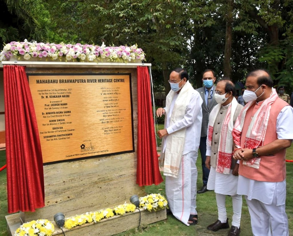The Vice President inaugurating 'Mahabahu Brahmaputra River Heritage Centre' on the bank of river Brahmaputra in Guwahati today. @jagdishmukhi @himantabiswa pic.twitter.com/z1d3LreVcv