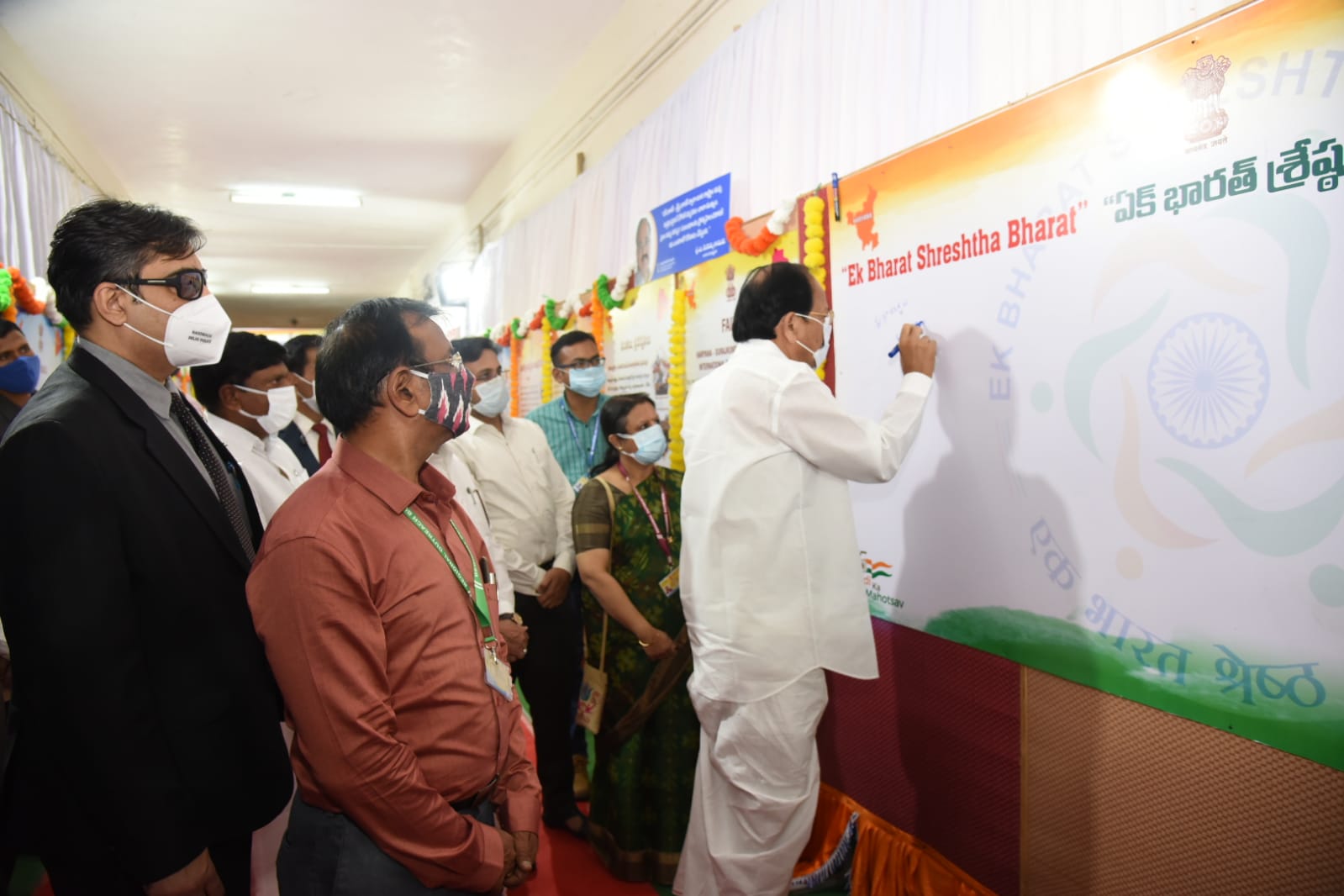 नई दिल्ली, 13दिसंबर। माननीय उपराष्ट्रपति श्री एम. वेंकैया नायडू ने आज शहर के पोट्टी श्रीरामुलु तेलुगू विश्वविद्यालय में ‘एक भारत श्रेष्ठ भारत (ईबीएसबी)’ पर आयोजित प्रदर्शनी का उद्घाटन किया। सूचना और प्रसारण मंत्रालय के क्षेत्रीय आउटरीच ब्यूरो द्वारा आयोजित इस प्रदर्शनी में जोड़ीदार राज्यों हरियाणा और तेलंगाना के विभिन्न दिलचस्प पहलुओं जैसे कि अनगिनत कला रूपों, व्यंजन, त्योहार, स्मारक, पर्यटन स्थल, इत्यादि पर प्रकाश डाला गया है। यह प्रदर्शनी 12 से 14 दिसंबर, 2021 तक हैदराबाद के नामपल्ली स्थित पोट्टी श्रीरामुलु तेलुगू विश्वविद्यालय के परिसर में आम जनता के लिए खुली रहेगी। इस प्रदर्शनी में प्रकाशन विभाग द्वारा कला और संस्कृति की विभिन्न थीम पर पेश की गई उल्लेखनीय पुस्तकों को प्रदर्शित किया गया है।