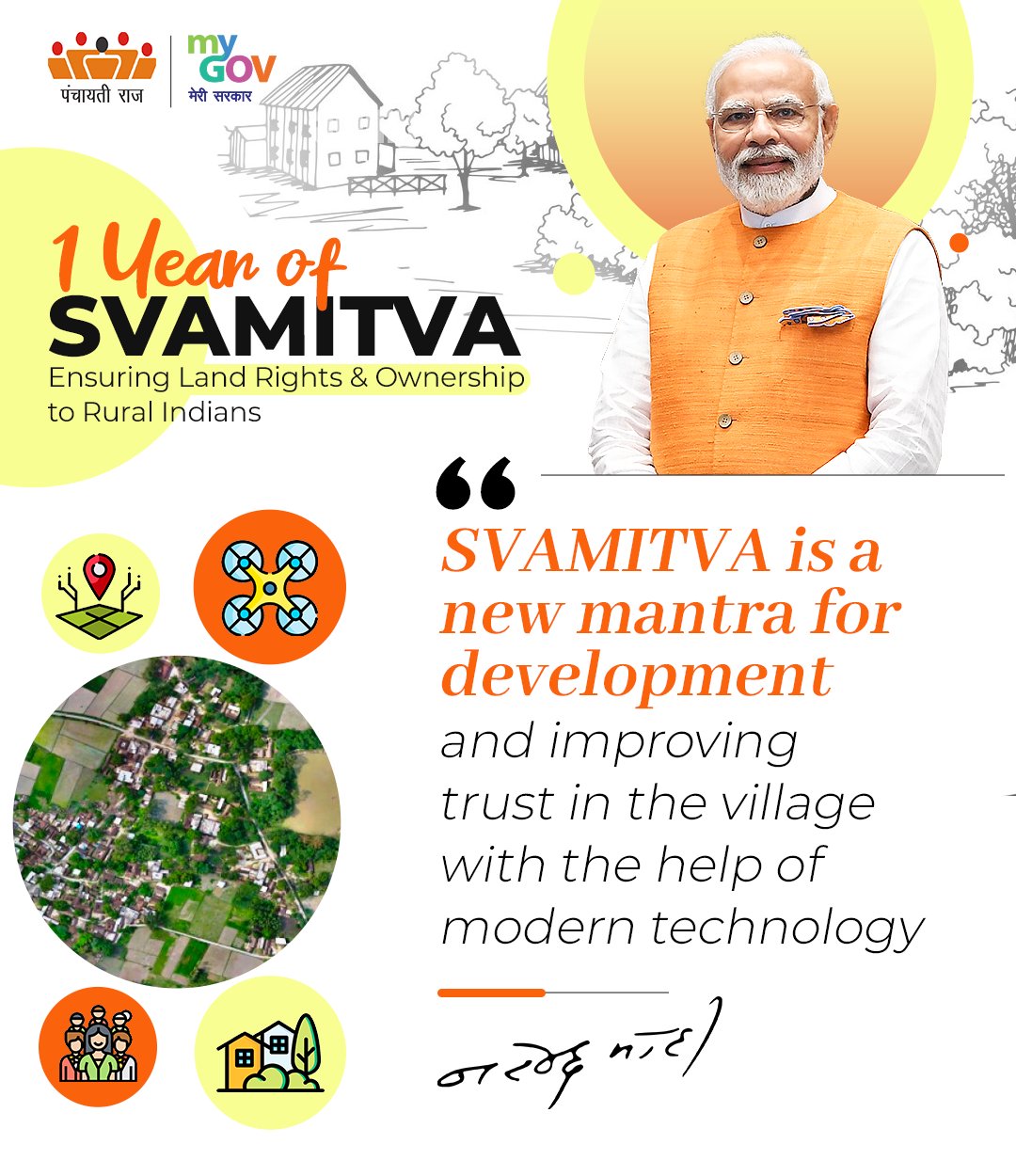 MyGovIndia के एक ट्वीट के जवाब में प्रधानमंत्री ने लिखा, “भारत के गांवों में हमारे सुशासन प्रयासों के मूल में लोगों के कल्याण के लिए प्रौद्योगिकी की शक्ति का लाभ उठाना है। इसका एक उदाहरण स्वामित्व योजना है, जिसके परिणाम बहुत अच्छे रहे हैं।”