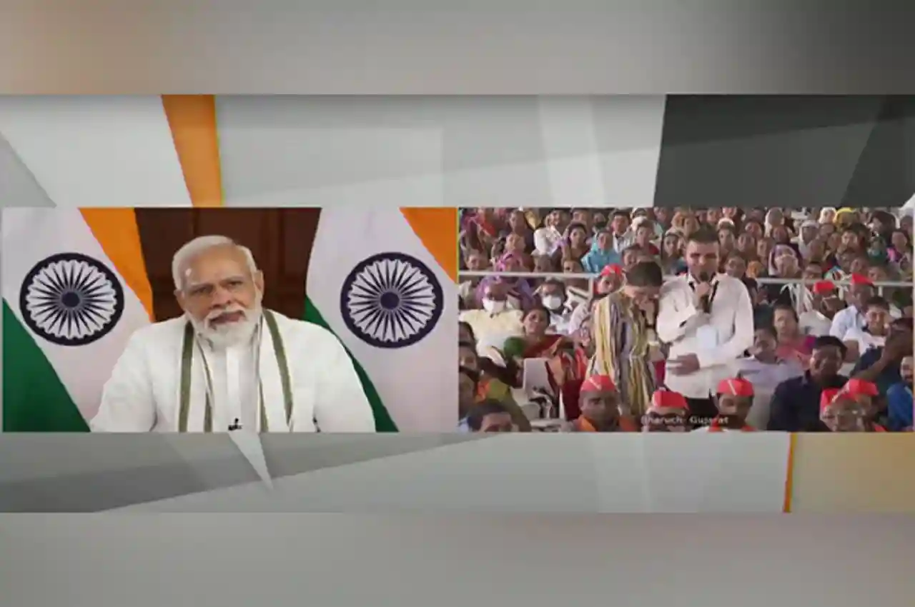 नई दिल्ली, 12 मई। पीएम मोदी ने गुजरात के भरूच में आयोजित ‘उत्कर्ष समारोह’ के लाभार्थियों से बातचीत की। पीएम मोदी कार्यक्रम में वर्चुअली शामिल हुए। इसके बाद पीएमम ने लाभार्थियों से बातचीत भी की। बता दें कि गुजरात के मुख्यमंत्री भूपेंद्र पटेल भी इस कार्यक्रम में मौजूद रहे। पीएम ने कहा, ‘ये उत्कर्ष समारोह इस बात का प्रमाण है कि जब सरकार ईमानदारी से, एक संकल्प लेकर लाभार्थी तक पहुंचती है, तो कितने सार्थक परिणाम मिलते हैं। मैं भरूच जिला प्रशासन को, गुजरात सरकार को सामाजिक सुरक्षा से जुड़ी 4 योजनाओं के 100 फीसदी पूरा होने के लिए बधाई देता हूं।’ मोदी ने कहा कि हमारी सरकार सामाजिक सुरक्षा, जन कल्याण और गरीब की गरिमा के लिए है। गरीब की गरिमा के लिए संकल्प और गरीब की गरिमा के संस्कार, यही तो हमें प्रेरित करते हैं।