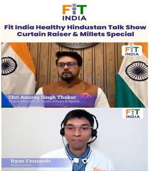 नई दिल्ली, 16जनवरी। विशेष कर्टेन रेजर एपिसोड के दौरान युवा कार्यक्रम और खेल मंत्री ने फिट इंडिया हेल्दी हिंदुस्तान आइकॉन के साथ एक विशेष सत्र में फिटनेस, हेल्दी डाइट चार्ट ,वरिष्ठ नागरिकों की जरूरतों के बारे में चर्चा की और हमारे दैनिक जीवन में मोटे अनाजों के महत्व पर एक विशेष सत्र में भाग लिया।