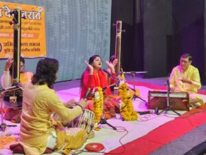 अपनी प्रस्तुति में उन्होंने सर्वप्रथम राग भिन्न षड्ज से अपनी प्रस्तुति की शुरुआत की तीन ताल निबद्ध पारंपरिक रचना ” उड़ जा रे कागा ” से प्रारंभ कर द्रुत तीन ताल में निबद्ध ” जा रे जा रे कागा ” यह प्रभावशाली बंदिश प्रस्तुत की। आपकी गायकी में सुर का लगाव तथा राग को समझाने का अंदाज खूब सराहा गया। दूसरी प्रस्तुति में स्वयं लिखी हुई रचना राग बसंत में प्रस्तुत की। इसके बोल थे ” ऋतु बसंत आयो आज ” ग्वालियर, जयपुर तथा इंदौर तीनों घराने की परंपरा को समृद्धिता से प्रस्तुत कर आपने श्रोताओं का मन मोह लिया। अंत में आपने मांड में मीराबाई का भजन “मैं गोविंद गुण गाऊ ” प्रस्तुत किया। आपके साथ हारमोनियम पर भरत जोशी ने उत्कृष्ट संगत की एवं तबले पर राहुल बेने ने प्रभावशाली संगत की। तानपुरे पर अश्विनी भावसार एवं ईशा सिंह गेहलोत ने संगत की।