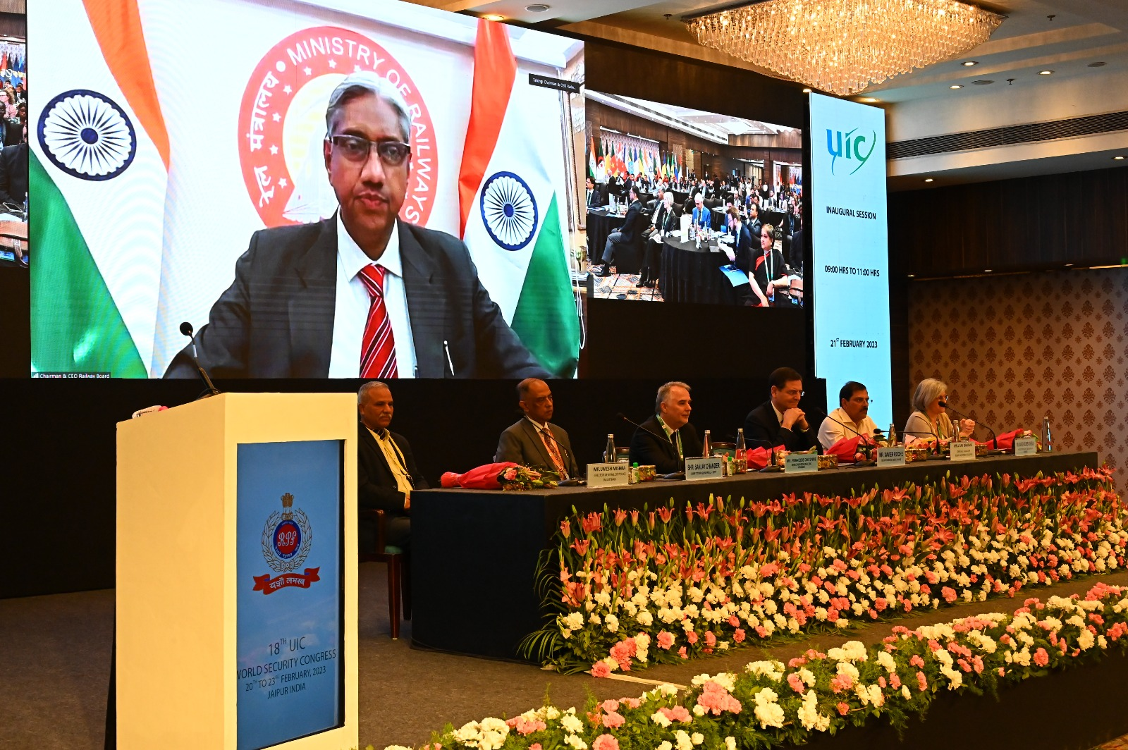 रेलवे बोर्ड के सीईओ और अध्यक्ष ए.के. लाहोटी ने अपने आभासी संबोधन में कहा कि रेलवे सुरक्षा बल द्वारा भारतीय रेल के माल, यात्रियों और संपत्ति की सुरक्षा असाधारण रूप से की गई है। रेलवे सुरक्षा बल की विरासत भारतीय रेलवे जितनी ही पुरानी है। उन्होंने इस बात को भी रेखांकित किया कि यूआईसी की विश्व सुरक्षा कांग्रेस किस प्रकार विचारों और सर्वोत्तम प्रथाओं के आदान-प्रदान और नई साझेदारियां बनाने के लिए एक अमूल्य मंच प्रदान करती है।